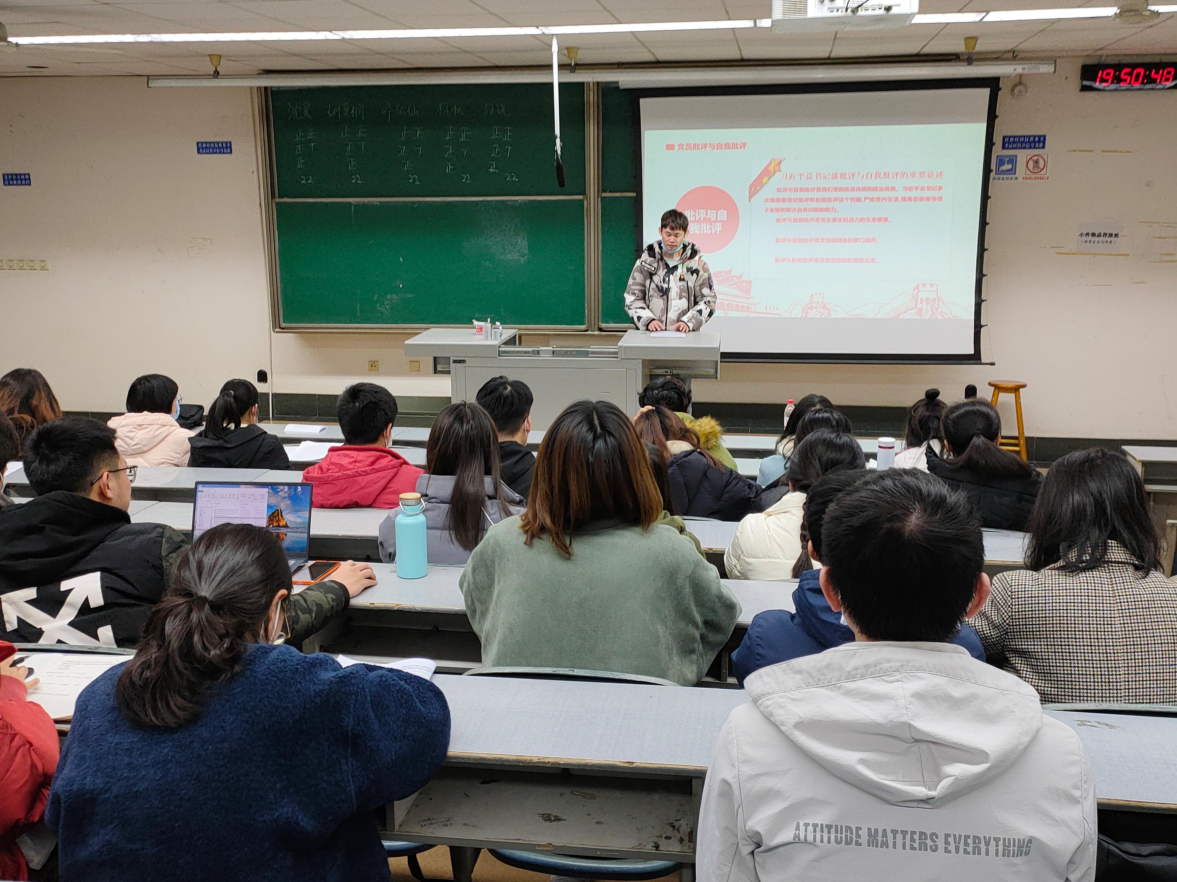 2020年12月29日晚,必赢bwin官网入口2020级硕士研究生党支部在九里校区四号楼4408教室开展批评与自我批评的主题党日活动,学院党委副书记赵钢锋同志出席会议。