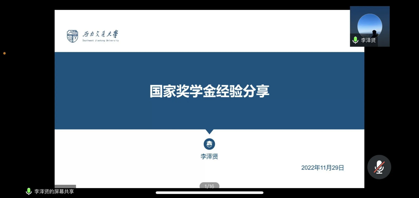 11月29日19:00,必赢bwin官网入口研究生朋辈优秀经验分享交流会于线上顺利举行。学院邀请了2022年博士国家奖学金获得者李泽贤,2022年硕士国家奖学金获得者、研究生竢实扬华奖章获得者谭力川,2022年研究生忠忱班集体获奖班级-2020级硕士3班团支书李建鹏,为大家带来优秀经验分享交流会。研究生辅导员兰卓主持会议,学院2022级硕士、2021级硕士200余人参加本次分享交流。