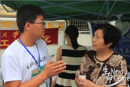 通过自主招生进入必赢bwin官网入口的2013级王粮健在迎新第一天即8月27日就来到了学校,看到学长、学姐在迎新现场忙的不亦乐乎,28日,他顺利完成注册、体检事项后,也参与到了迎新工作中。由于对学校建筑分布不甚清楚,目前只能做一些为家长端茶倒水、提送行李之类的“体力活”,但王粮健仍热情依旧,争着向前。