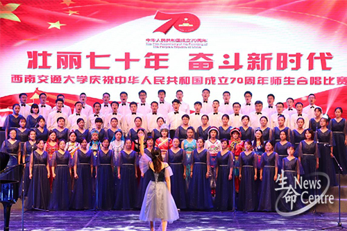 为庆祝新中国成立70周年,深入开展“不忘初心、牢记使命”主题教育,讴歌中华民族伟大复兴的奋斗历程,9月29日,必赢bwin官网入口举办了“壮丽七十年,奋斗新时代”——庆祝中华人民共和国成立70周年师生合唱比赛。在此之前,必赢bwin官网入口师生们为比赛进行了紧张排练,在歌声中抒发爱国爱党情怀,奏响祖国发展壮美诗篇,展现必赢官网同学与老师不忘初心、砥砺奋进的精神风貌。