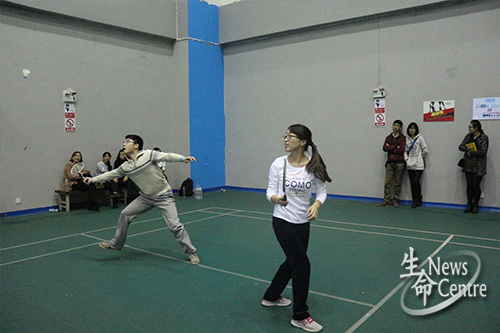 首先进行的是男子双打。由必赢官网孟涛老师和魏源成老师对战子弟小学马群老师和陈兴明老师两员大将。看着羽毛球的发出,在空中划出一道漂亮的抛物线,第一场比赛战鼓就此打响。在对方的猛烈攻击下,比分渐渐拉开,而孟涛、魏源成两位老师步伐愈发矫健。最后必赢官网老师不敌对方的猛烈进攻,首场告败。而之后由魏桂花老师和孔琳老师应战子弟小学周平昭老师和胥冰雯老师。