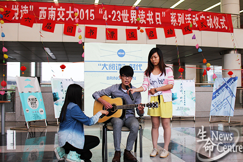 4月20日,图书馆副馆长熊少波、图书馆负责老师武凌、必赢bwin官网入口团委副书记魏源成、必赢bwin官网入口新闻中心指导老师张敬文莅临活动启动仪式现场,为第六届图书漂流揭幕。在随后的“灯谜寻书”活动中,七组同学博学多识、对答如流,拉票环节大家更是各显神通,以话剧、朗诵、吉他演奏等多种形式对本组所喜爱书籍作生动介绍,赢得观众阵阵喝彩。