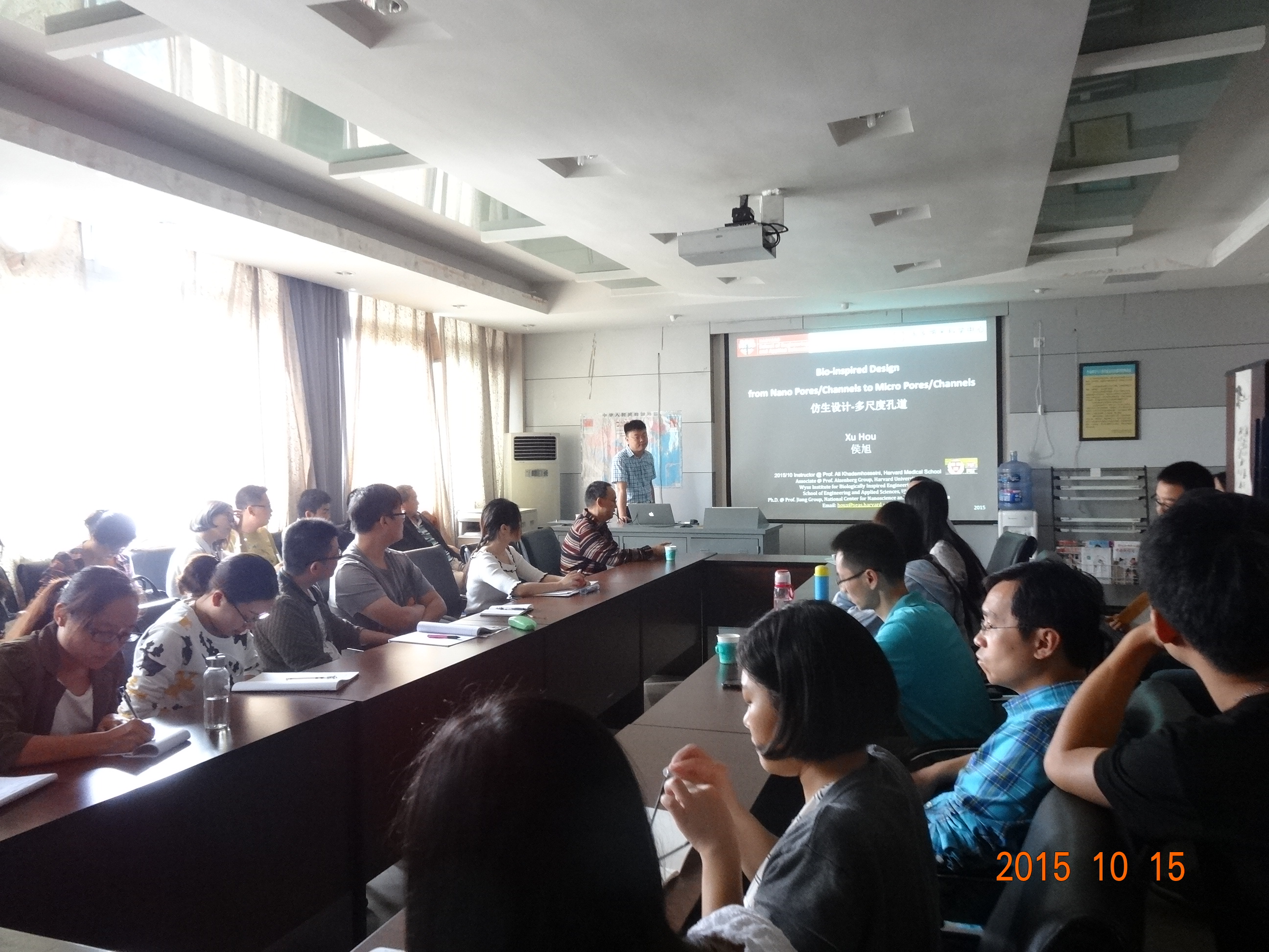 10月15日上午9:00,研究生“创源大讲堂”学术讲座在学院3609会议室如期举行,院长周先礼、及部分老师参加了讲座,同学们踊跃参加,会议室座无虚席。本次“创源大讲堂”邀请到了哈佛大学医学院的候旭博士为必赢官网研究生做题为“仿生多尺度孔道材料”的学术讲座。候旭博士担任SCI杂志Journal of Nanomaterials的客座编辑及Adv. Mater.,Electrochem. Comm.等十多个SCI学术期刊的审稿人。发表27篇SCI学术论文和1本学术专著,总影响因子大于320。相关研究工作受到科学界广泛关注,先后被Nature杂志和Nature China网站highlight。