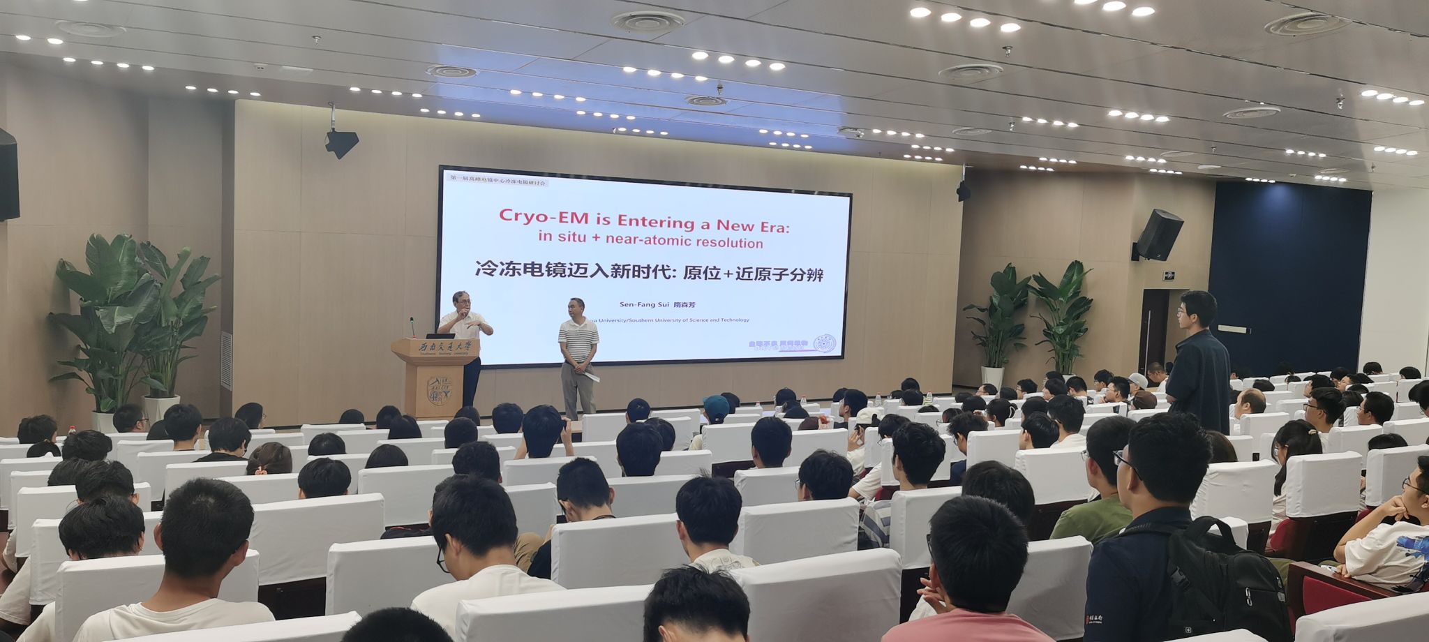 在必赢bwin官网入口交流访问期间,隋森芳院士作了题为《冷冻电镜在生物研究的新进展》的专题学术报告。隋森芳院士围绕实验室应用冷冻电镜技术(cryo-EM)并结合生物化学、生物物理学和细胞生物学等技术方法,在研究生物膜相关的生物大分子复合物的结构与功能方面取得的一系列原创性的成果,如胆固醇吸收膜蛋白NPC1L1结构及Ezetimibe抑制机制,囊泡膜融合蛋白复合物NSF-SNAP-SNARE结构及SNARE解聚机制,囊泡拴系蛋白复合物TRAPP-II结构及 GTPase激活机制,囊泡膜内陷蛋白寡聚体Vps4结构,酵母核孔复合体NPC结构及物质转运机制,光合膜超大蛋白复合物的结构及能量传递机制等,并介绍了近期其实验室注重于细胞原位生物大分子复合物的结构解析及方法学研究。